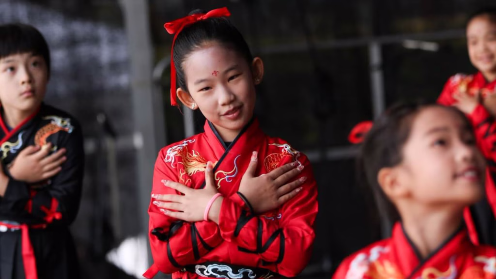barna i forestillingen fikk tradisjonelle kostymer til forestillingen "flowers all the way" under ERAS festival for barn og unge 2024. Foto: NORWEGIAN-CHINESE WOMEN AND CHILDREN ASSOCIATION